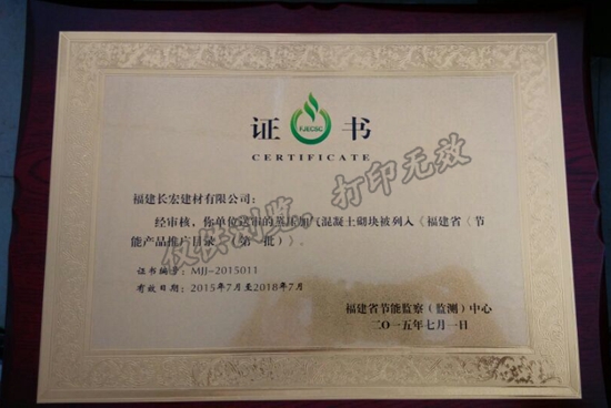 • 2015-01-28福建省新材辦通過我公司“蒸壓加氣混凝土砌塊”新材產(chǎn)品認定